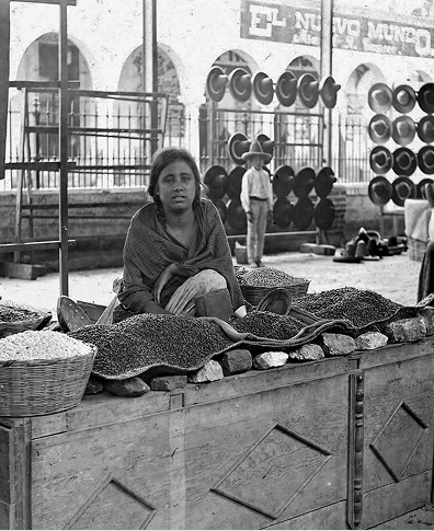 بائعة في كشكها لبيع الفاصوليا،